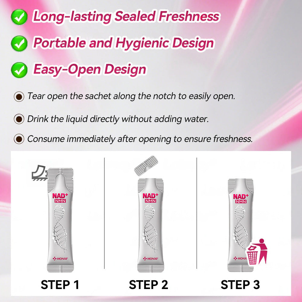 ✅ Rapid Absorption: The fast-acting liquid formula delivers core ingredients NMN → NAD⁺ directly to cells, offering gentle yet effective results, especially suitable for those with digestive sensitivities.